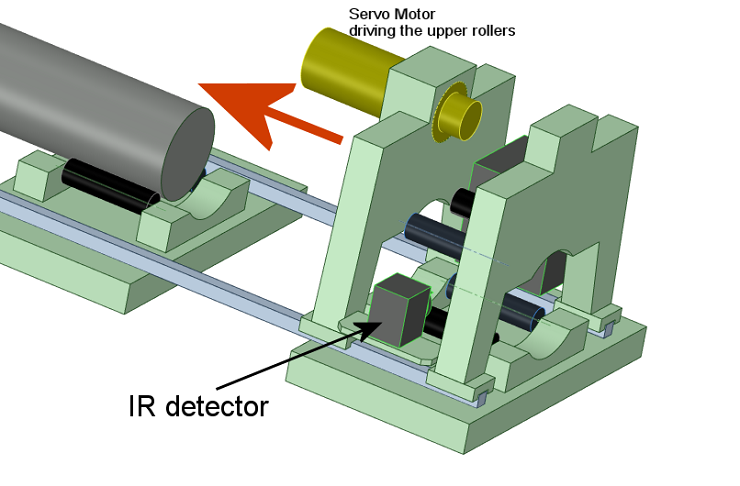系統(tǒng)的基礎(chǔ)結(jié)構(gòu)由相同的輥動單元構(gòu)成。輥子裝置安全地固定鋼錠,并充當(dāng)兩側(cè)軌道的基礎(chǔ)結(jié)構(gòu),單晶硅芯長棒沿滾動支撐結(jié)構(gòu)鋪設(shè)。紅外測量單元在單晶長棒上方移動,同時旋轉(zhuǎn)單晶長棒。紅外測量是掃描式的,在固定電橋位置360度旋轉(zhuǎn)期間拍攝的圖像。測量單元移動到下一個測量位置,對于圓柱形物體,這種測量策略給出了最準(zhǔn)確的結(jié)果。