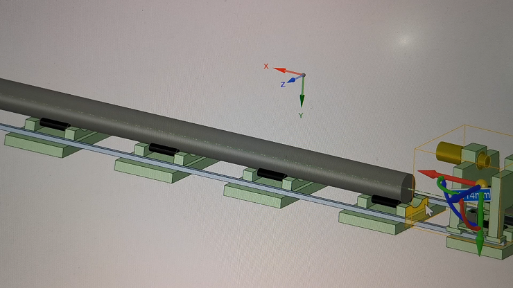 ■ 單晶硅芯長棒沿滾動支撐結(jié)構(gòu)鋪設(shè)。