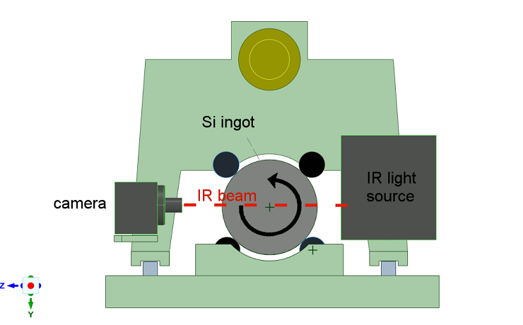 ■ 紅外測量單元在單晶長棒上方移動,同時旋轉(zhuǎn)單晶長棒。