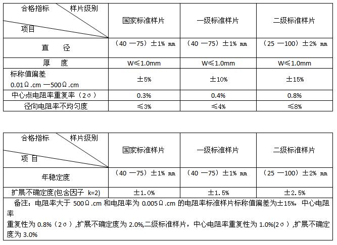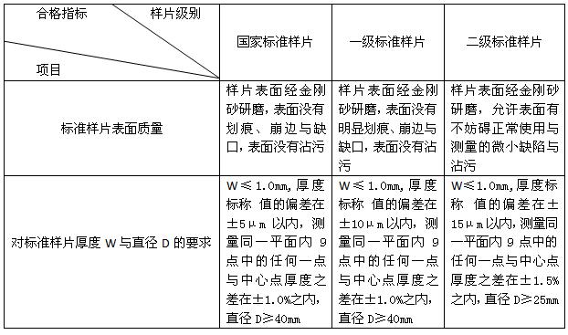 標(biāo)準(zhǔn)樣片的各項(xiàng)指標(biāo)要求: