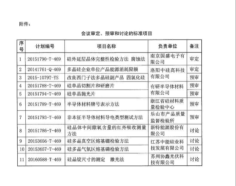 2016年9月7日半導體材料標準工作會議在新疆昌吉召開,會議將對《多晶硅企業(yè)單位產品能源消耗限額》等11項標準進行討論、預審、審定和任務落實。