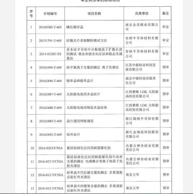 12月7日,有研半導(dǎo)體材料有限公司,南京中鍺科技有限責(zé)任公司,云南臨滄鑫圓鍺業(yè)股份有限公司,北京合能陽(yáng)光新能源技術(shù)有限公司等四十多家標(biāo)委會(huì)成員單位及近百名專家參與并完成了磷化銦多晶》等13項(xiàng)半導(dǎo)體材料國(guó)家和行業(yè)標(biāo)準(zhǔn)的審定、預(yù)審和討論。會(huì)議在12月7日下午5點(diǎn)取得圓滿成功。
