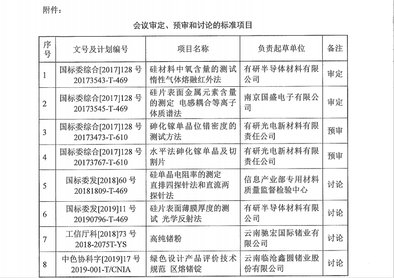 17日,會議取得圓滿結(jié)束,會議完成了行業(yè)標(biāo)準(zhǔn)項(xiàng)目的論證并完成了《硅材料中氧含量的測試惰性氣體熔融紅外法》等8項(xiàng)光伏半導(dǎo)體材料國家和行業(yè)標(biāo)準(zhǔn)的預(yù)審、討論和討論。