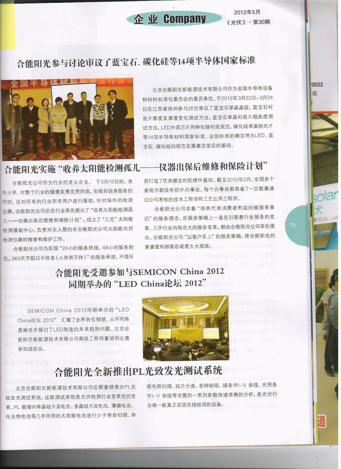 北京合能陽光新能源技術(shù)有限公司作為全國半導(dǎo)體設(shè)備和材料標準化委員會的委員單位,于2012年3月22日-3月24日在江蘇省徐州參與討論審議了藍寶石單晶晶錠,藍寶石襯底片厚度及厚度變化測試方法,藍寶石單晶襯底片翹曲度測試方法,LED外延芯片用砷化鎵襯底規(guī)范,碳化硅單晶拋光片等14項半導(dǎo)體材料國家標準。這些標準的確定將為LED、藍寶石、碳化硅的規(guī)范發(fā)展奠定堅實的基礎(chǔ)。