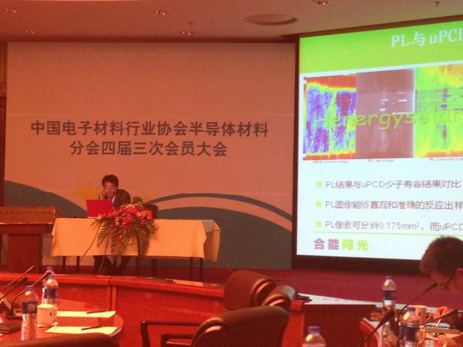 The picture shows HenergySolar Technology Co., Ltd., CEO  Zongjie Xiao made ??a keynote speech of  semiconductor material  quality  and competitiveness improvement  in the  low-profit era ".